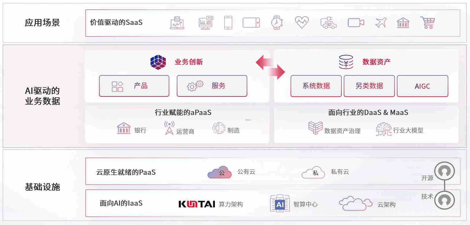 数字时代,,围绕企业数字化转型的关键要素,,,,谈球吧数码开创性的提出数云融合战略和技术体系框架,,,,着力在云原生、、、、数字原生、、、AI原生和信创产业上架构产品和服务能力,,为处在不同数字化转型阶段的快消零售、、、、汽车、、金融、、医疗、、政企、、、教育、、、、运营商等行业客户提供泛在的敏捷IT能力和融合的数据驱动能力,,,,构建跨界融合创新的数字业务场景和新业务模式,,,,助力企业级客户建立面向未来的核心能力和竞争优势,,,,全面推动社会的数字化、、、、智能化转型升级。。。。